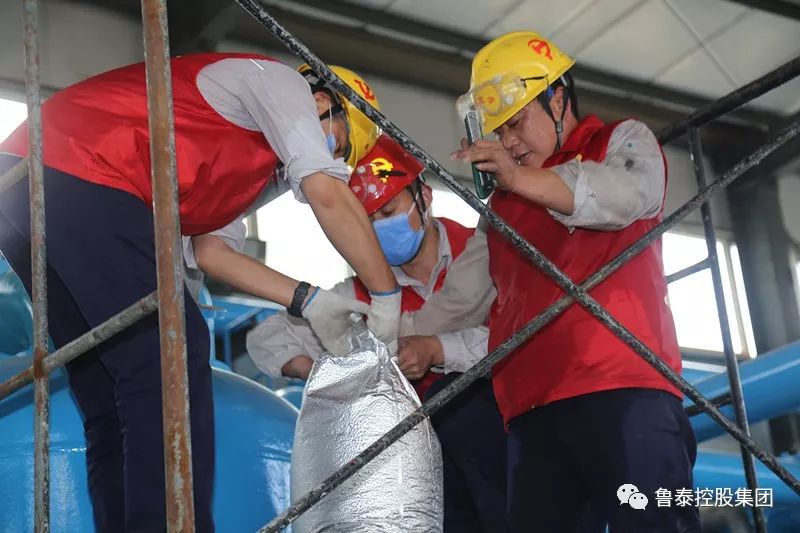 8时30分的铃声敲响时,在一面鲜红的党旗下,来自鲁泰化学不同岗位的党员志愿者汇聚一起,面戴口罩,手持工具,斗志昂扬,一身戎装准备作战。当干燥塔轰隆隆的声音渐渐停息时,他们争相爬上了1米多高的铁架,竭尽全力卸开入料口盖板,此时,一股热气扑面而来,吹响了奋进号角。